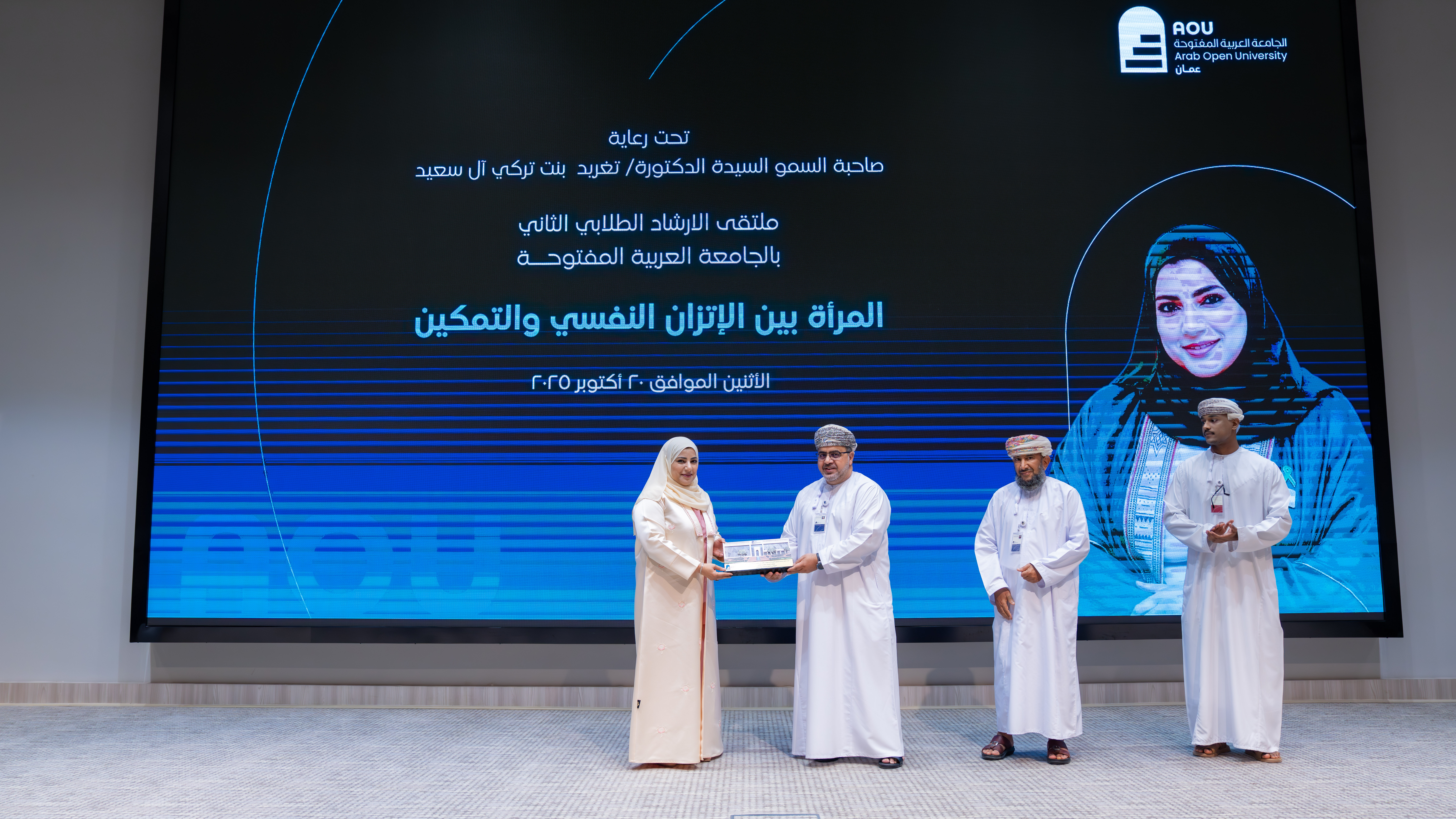 اختتمت الجامعة العربية المفتوحة أعمال ملتقى الإرشاد الطلابي الثاني بعنوان "المرأة بين الاتزان النفسي والتمكين"، تحت رعاية صاحبة السمو السيدة الدكتورة تغريد بنت تركي آل سعيد، كما تفضلت بافتتاح المعرض المصاحب الذي استعرض مبادرات ومشاريع تعنى بالصحة النفسية وتمكين المرأة.